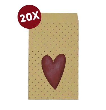 Gemaakt van 50 grams bruin kraftpapier (de tint kan door recycling per zakje een klein beetje verschillen).