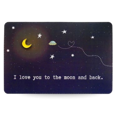Met deze kaart zeg je aan je geliefde dat je liefde voor hem of haar heel grenzeloos groot is. De leuke emaille pin in de vorm van een maan is een tevens een klein geschenkje.