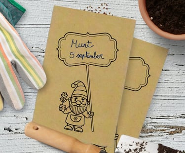 Leuke kraft zaadzakjes om je zelfgekweekte zaadjes netjes op te bergen of als geschenk te geven. In het kadertje kan je de plantnaam en oogstdatum schrijven.